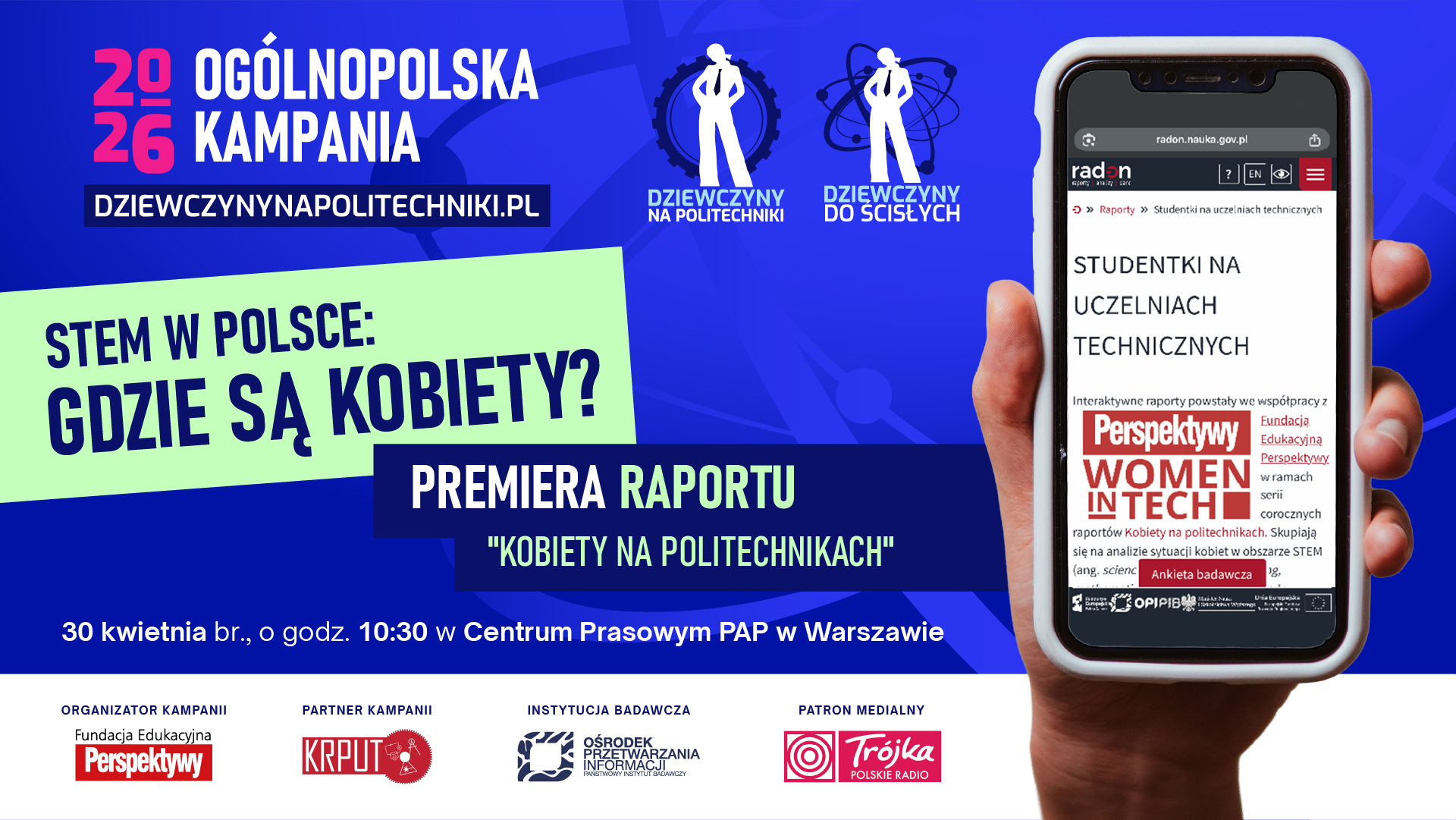 Publikowany co roku raport jest elementem pionierskiej, a jednocześnie największej w Polsce kampanii Dziewczyny na Politechniki! / Dziewczyny do Ścisłych! prowadzonej konsekwentnie od 19 lat przez Fundację Edukacyjną Perspektywy i Konferencję Rektorów Polskich Uczelni Technicznych. Raport opublikowany będzie w formie cyfrowej wersji interaktywnej na portalu radon.nauka.gov.pl.